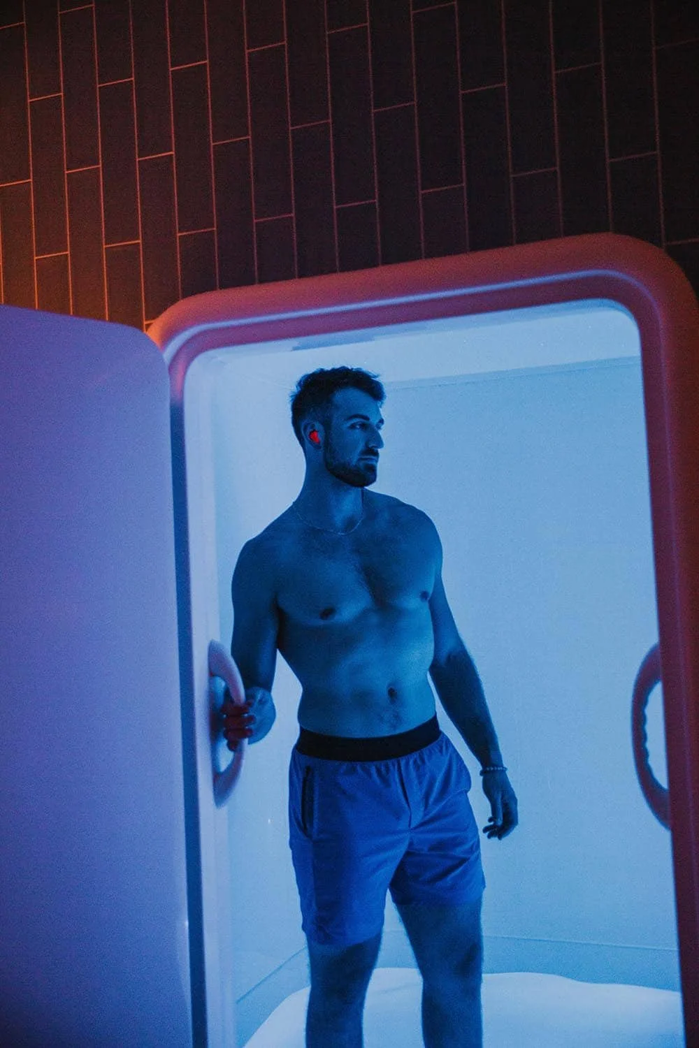 Once you are ready, you will enter the float and lie back. The high concentration of Epsom salt will make you float effortlessly on the surface of the water. You will have control over the lights and music volume in the tank, and you can choose to have them on or off. Pure Sweat Studios offers a curated selection of sound therapy tracks that can be customized for your session and to support your mindset. For the full sensory deprivation experience, it is recommended to turn them off.